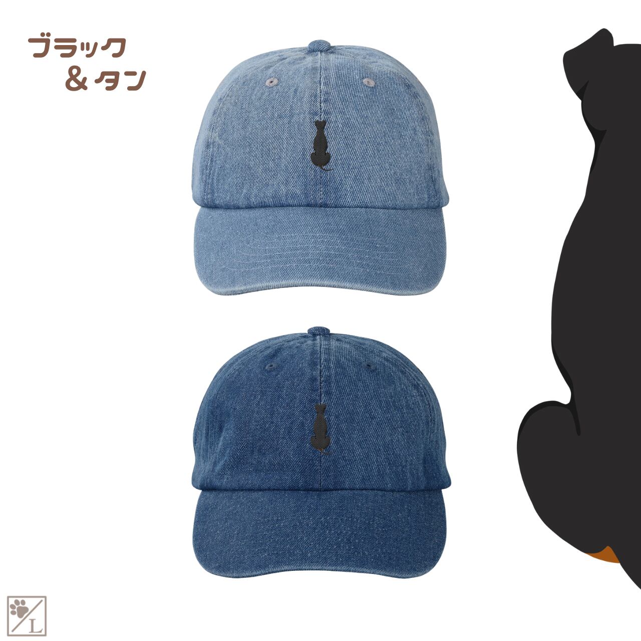 【ドーベルマン / 折れ耳&長い尾】刺繍 犬の後ろ姿デニムキャップ・バケットハット|選べる3色|愛犬家に人気の帽子