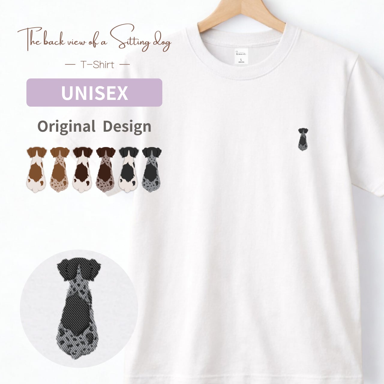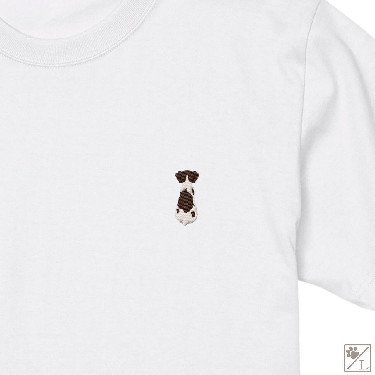 【ブリタニースパニエル】おすわり犬の後ろ姿 刺繍ワンポイントTシャツ|ユニセックス|オリジナルデザイン