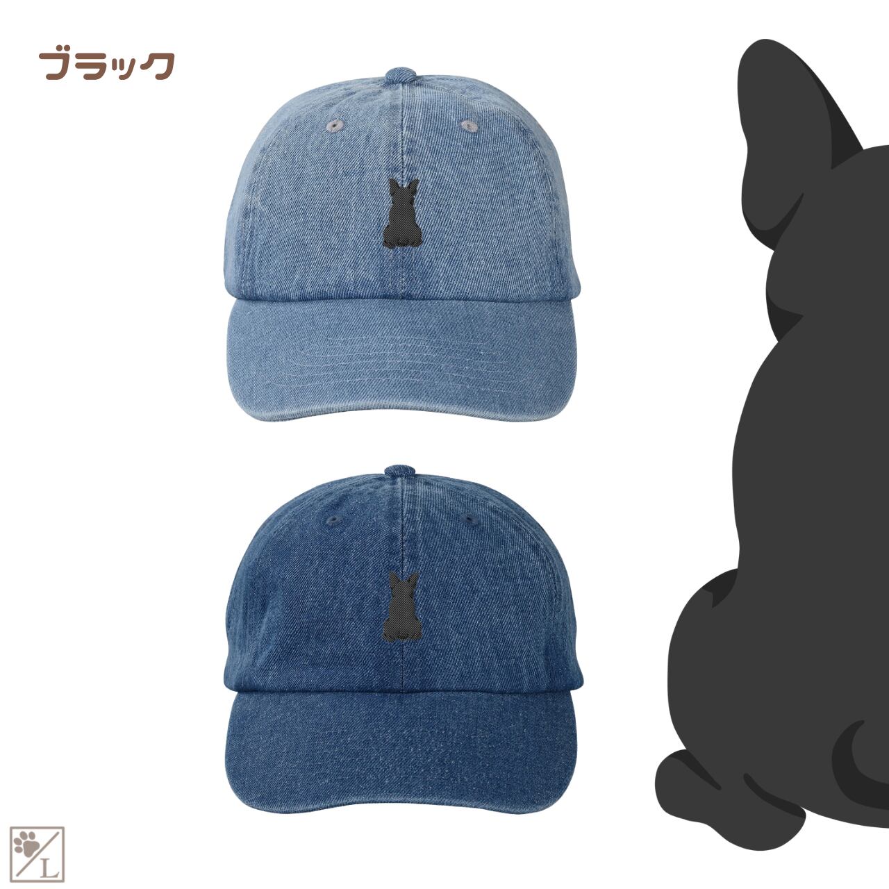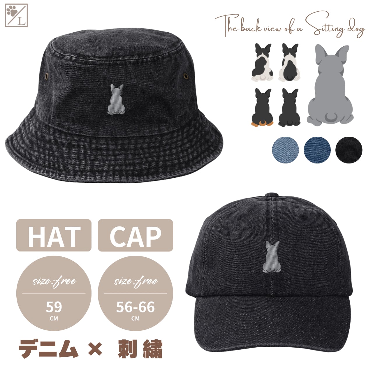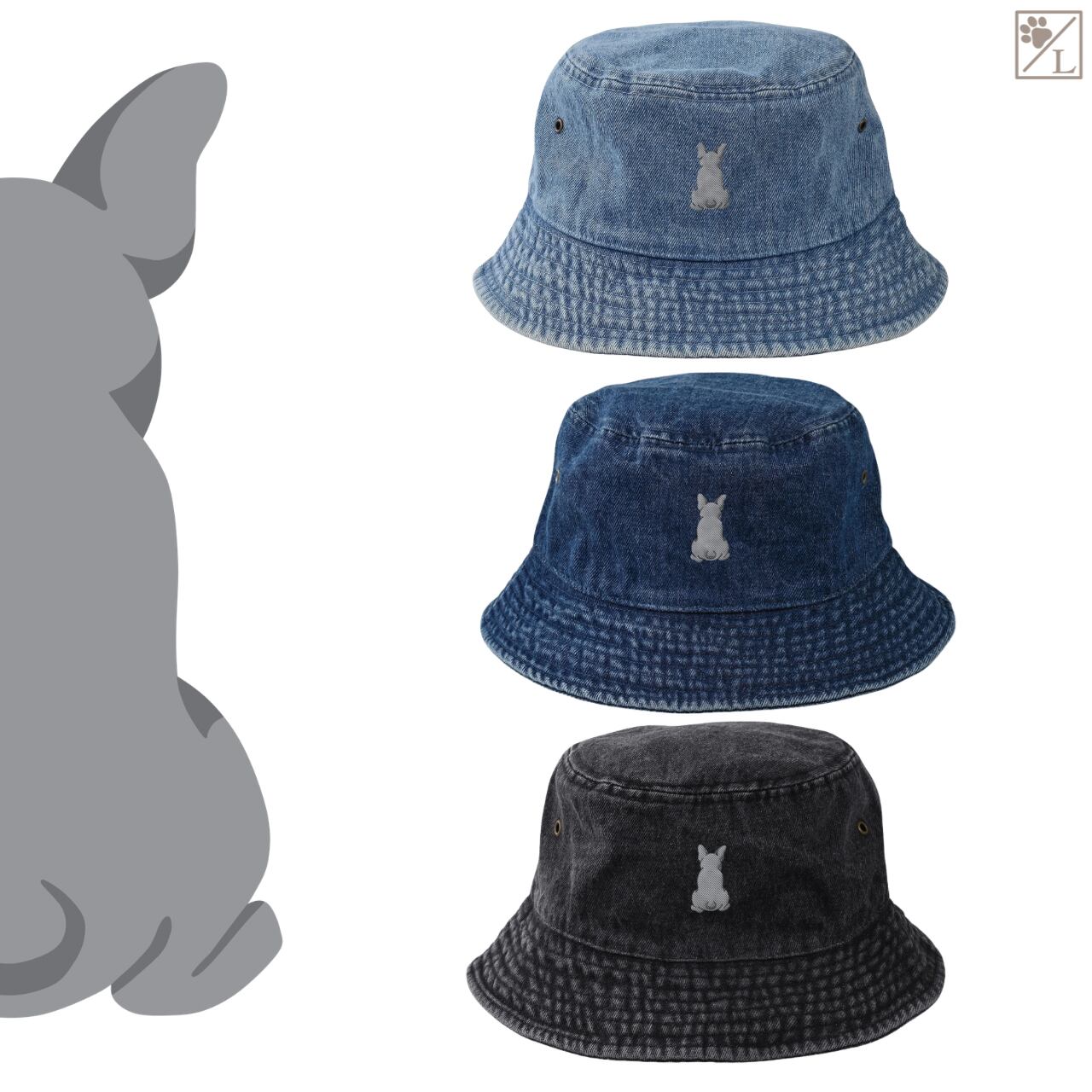 【フレンチブルドッグ】フレブル 刺繍 犬の後ろ姿デニムキャップ・バケットハット|選べる3色|愛犬家に人気の帽子