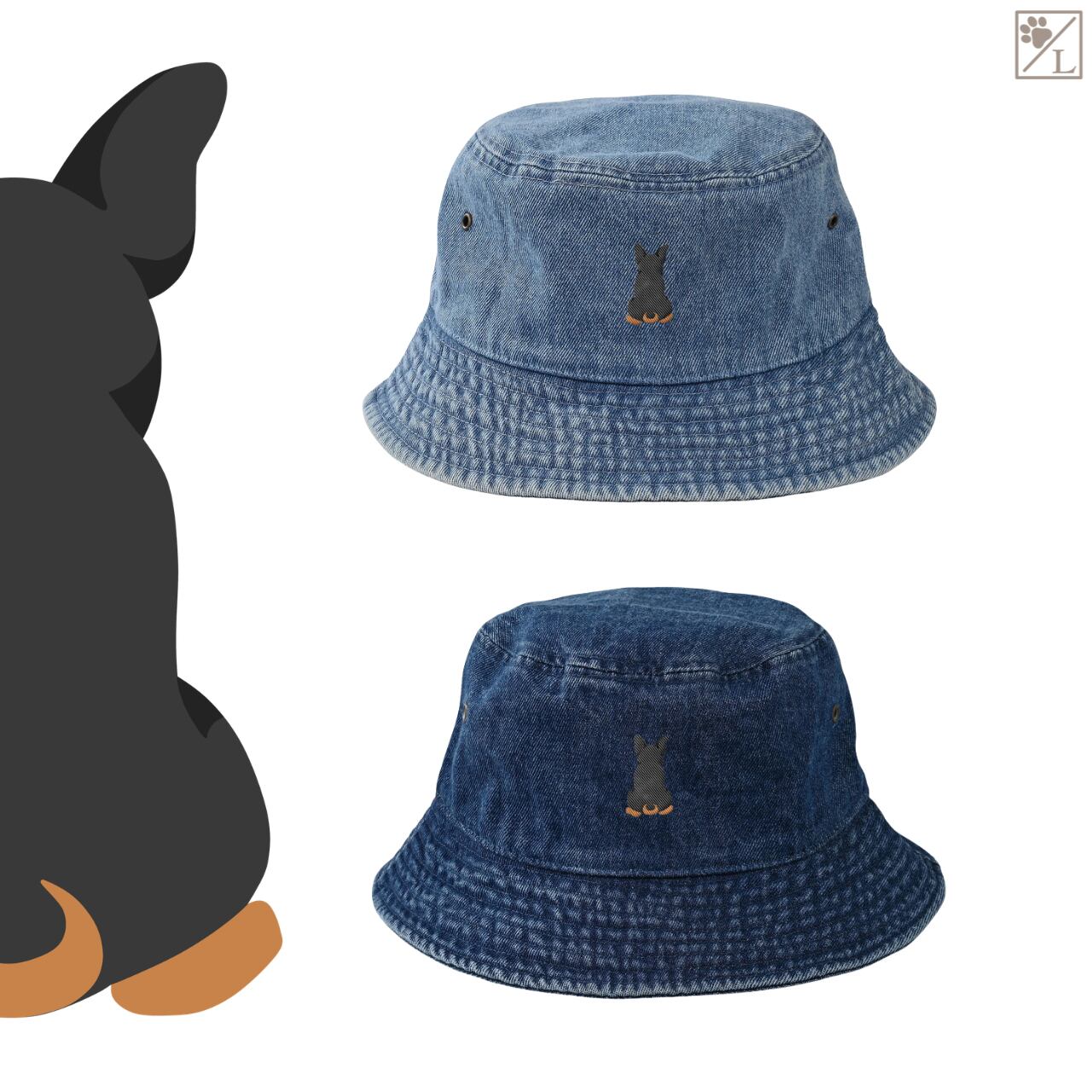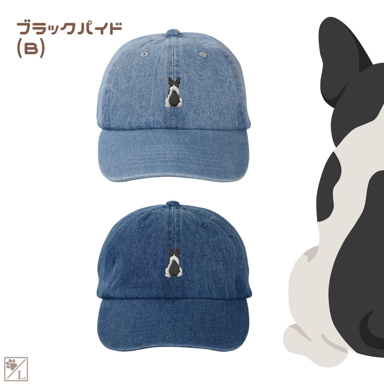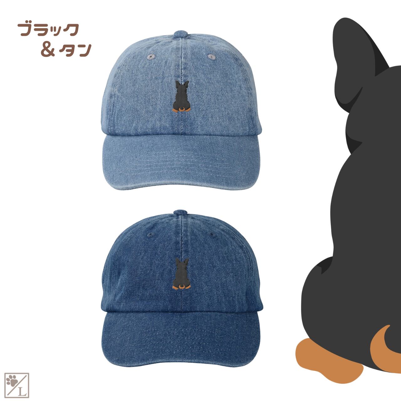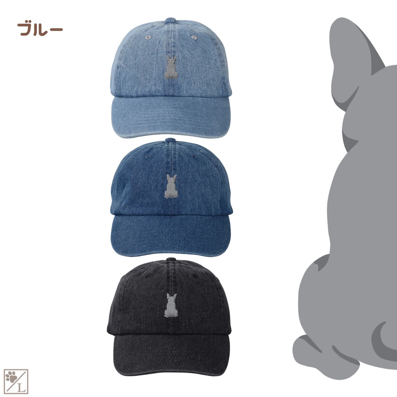 【フレンチブルドッグ】フレブル 刺繍 犬の後ろ姿デニムキャップ・バケットハット|選べる3色|愛犬家に人気の帽子