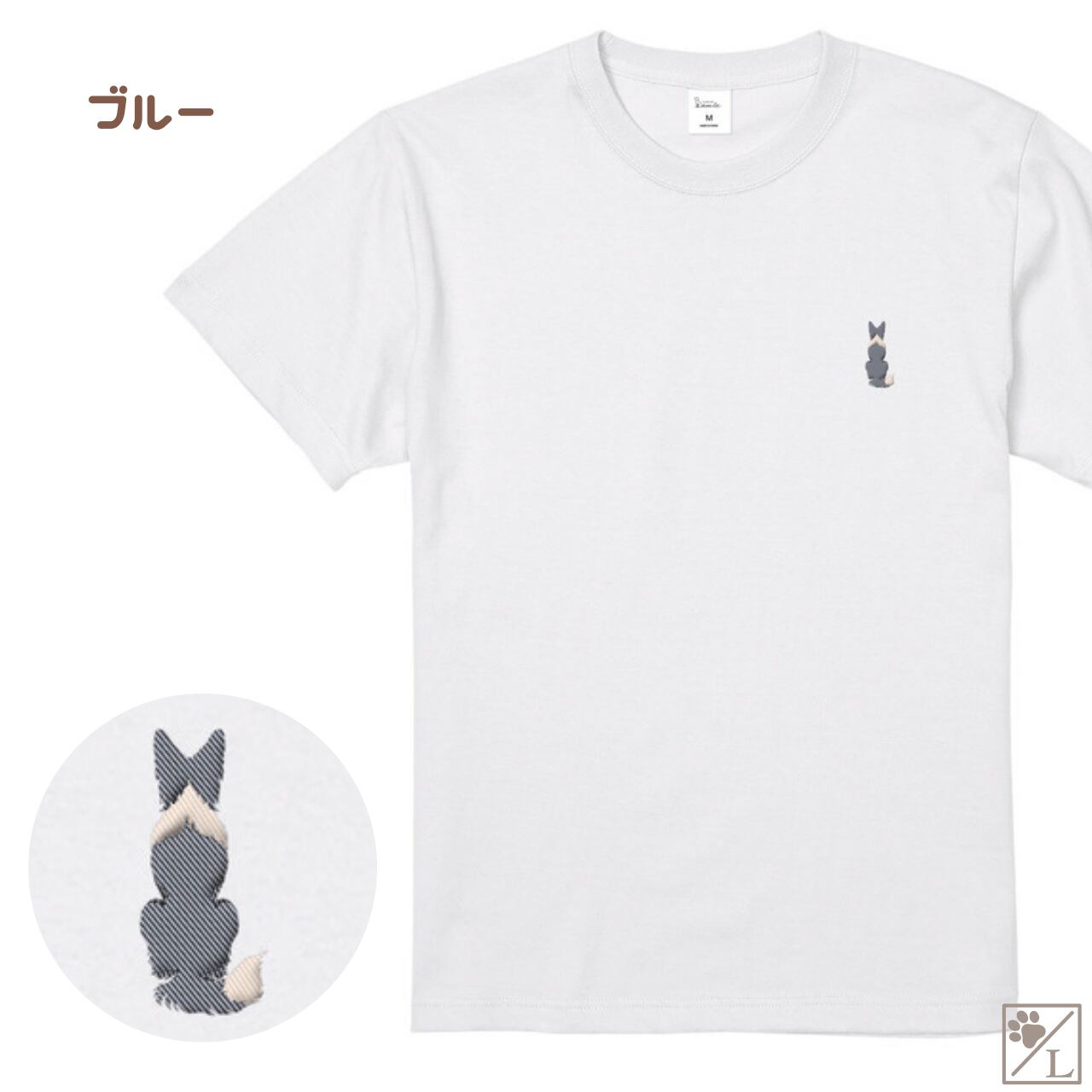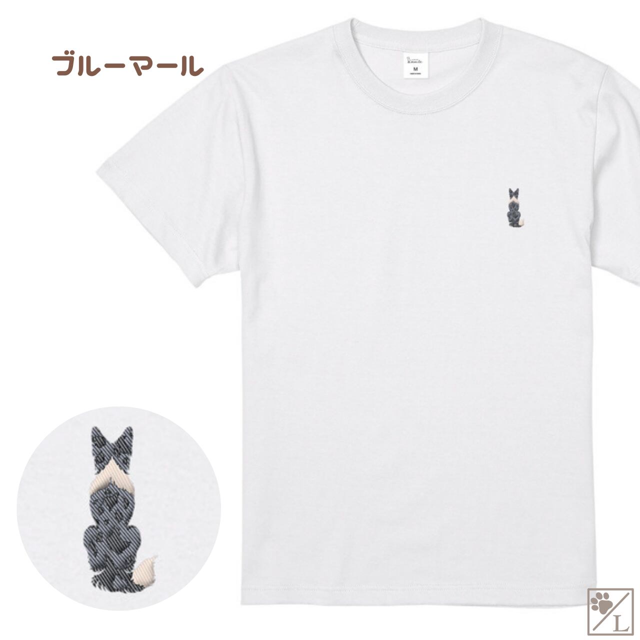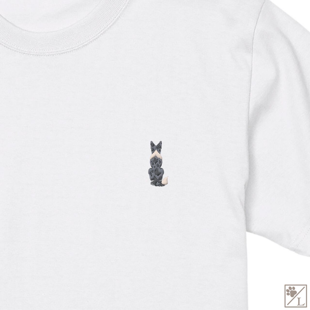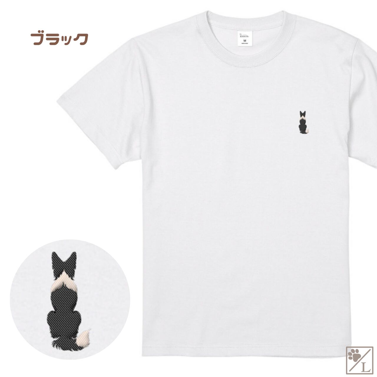 【ボーダーコリー】ボダコ おすわり犬の後ろ姿 刺繍ワンポイントTシャツ|ユニセックス|オリジナルデザイン