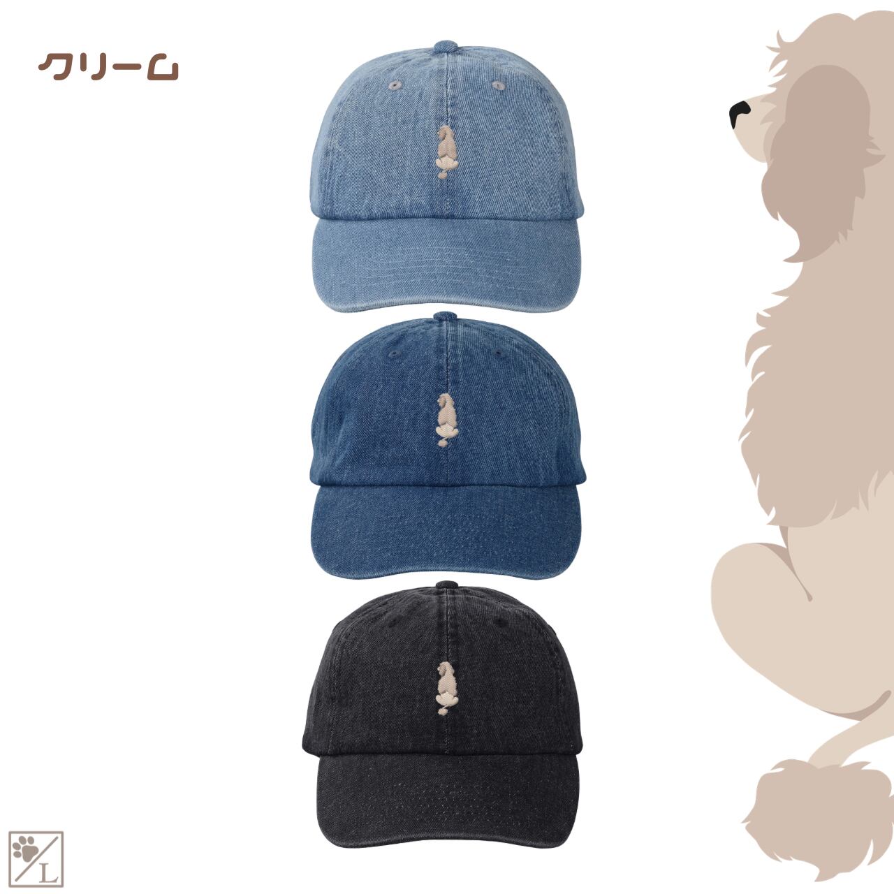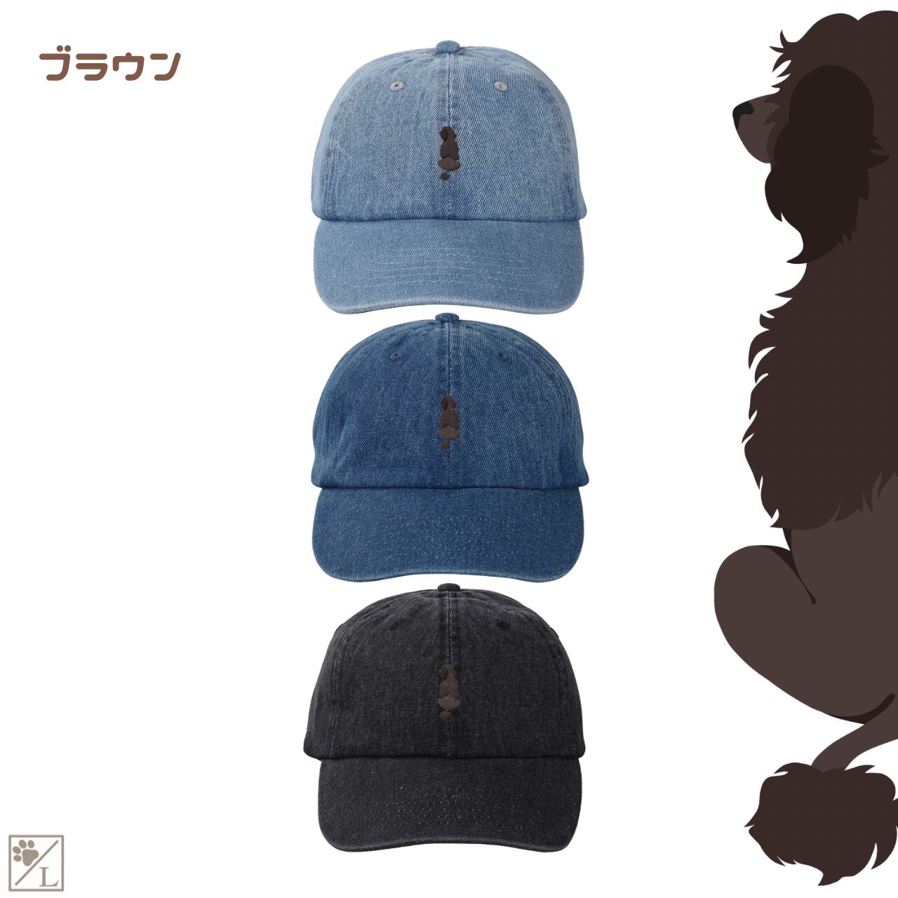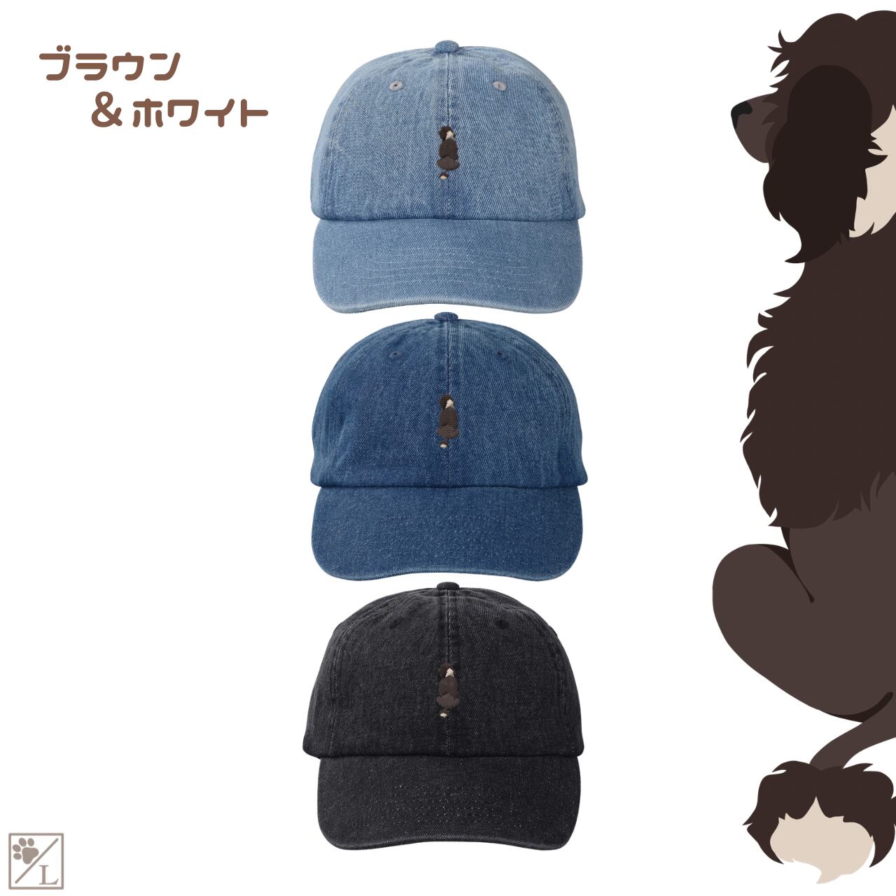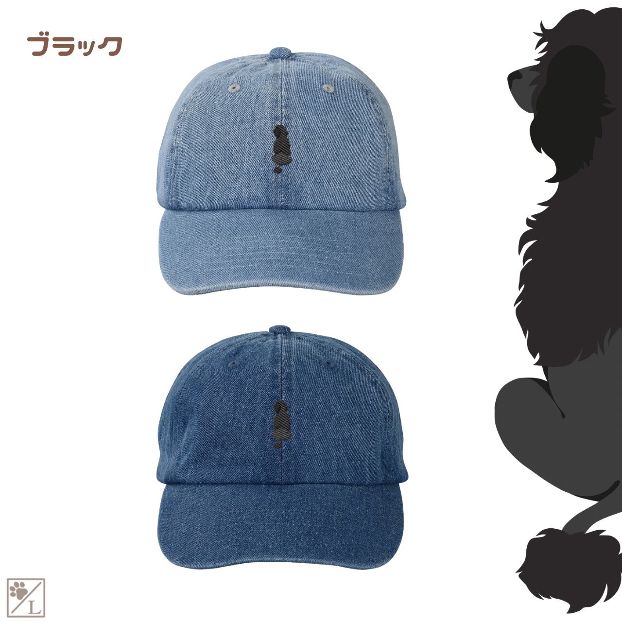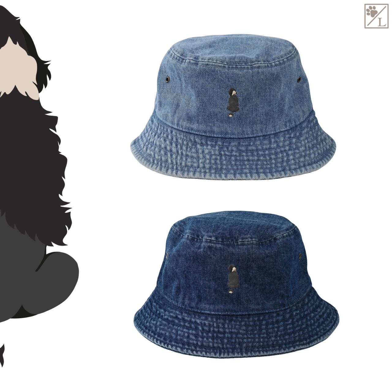 【ポーチュギースウォータードッグ】ポーティー 刺繍 犬の後ろ姿デニムキャップ・バケットハット|選べる3色|愛犬家に人気の帽子