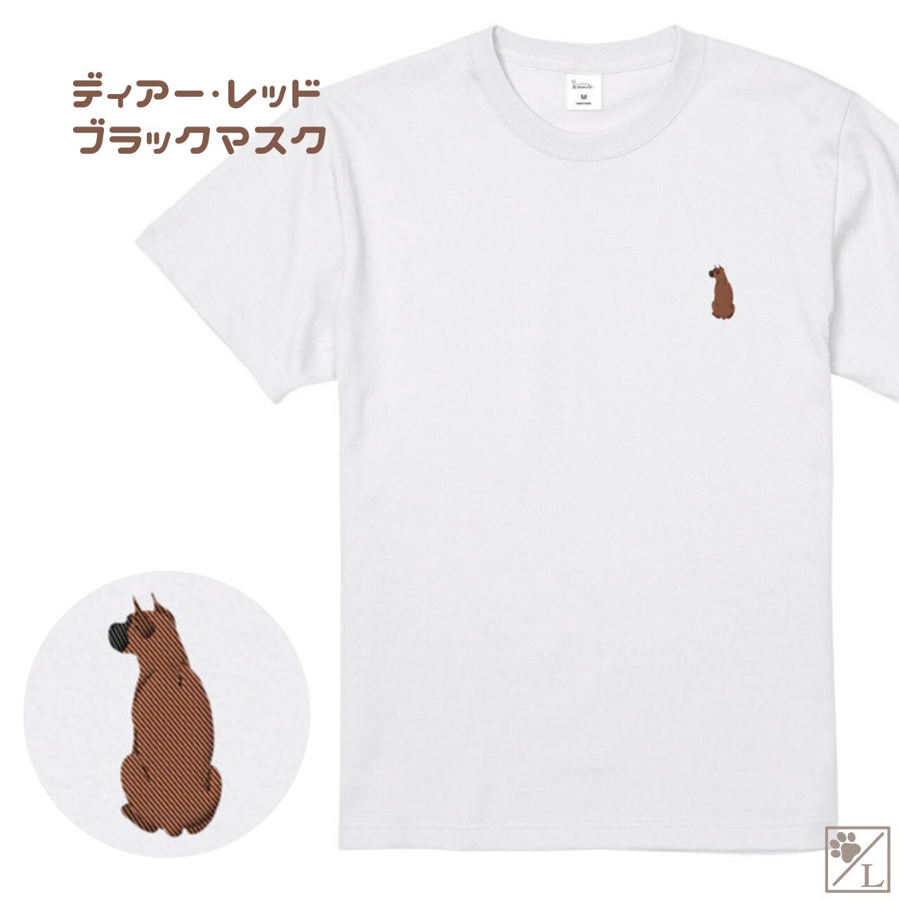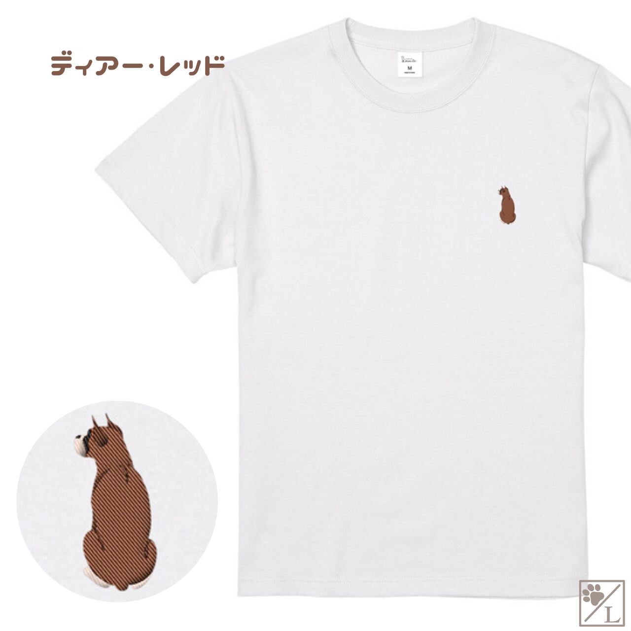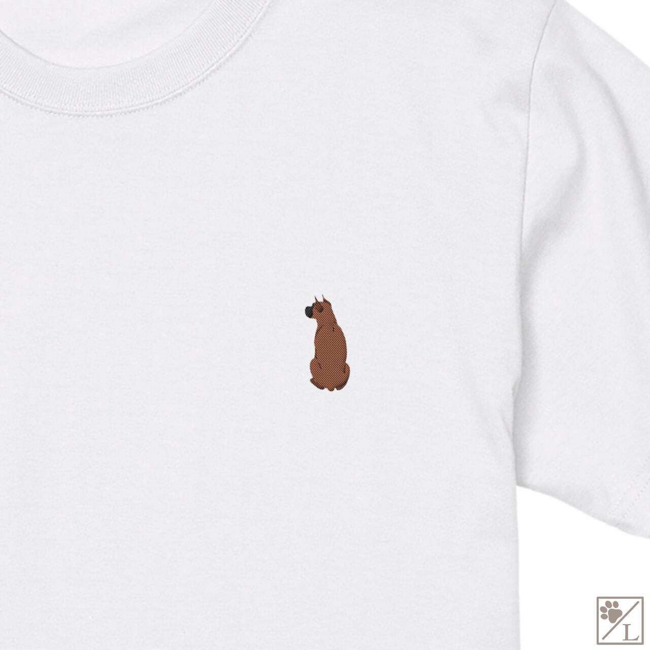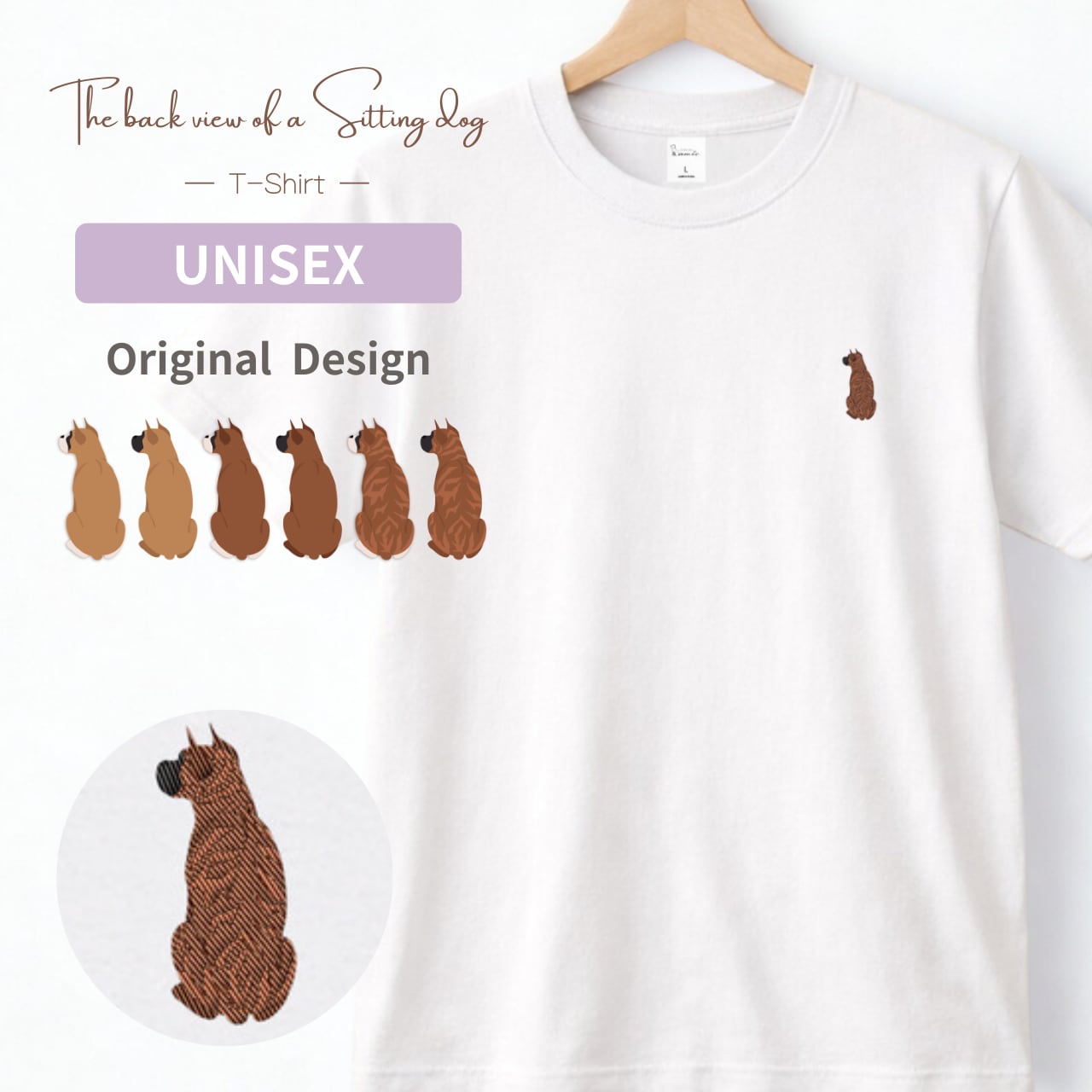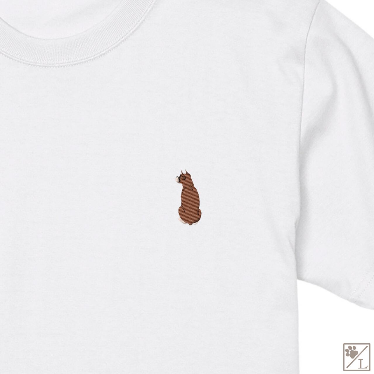 【ボクサー】 おすわり犬の後ろ姿 刺繍ワンポイントTシャツ|ユニセックス|オリジナルデザイン