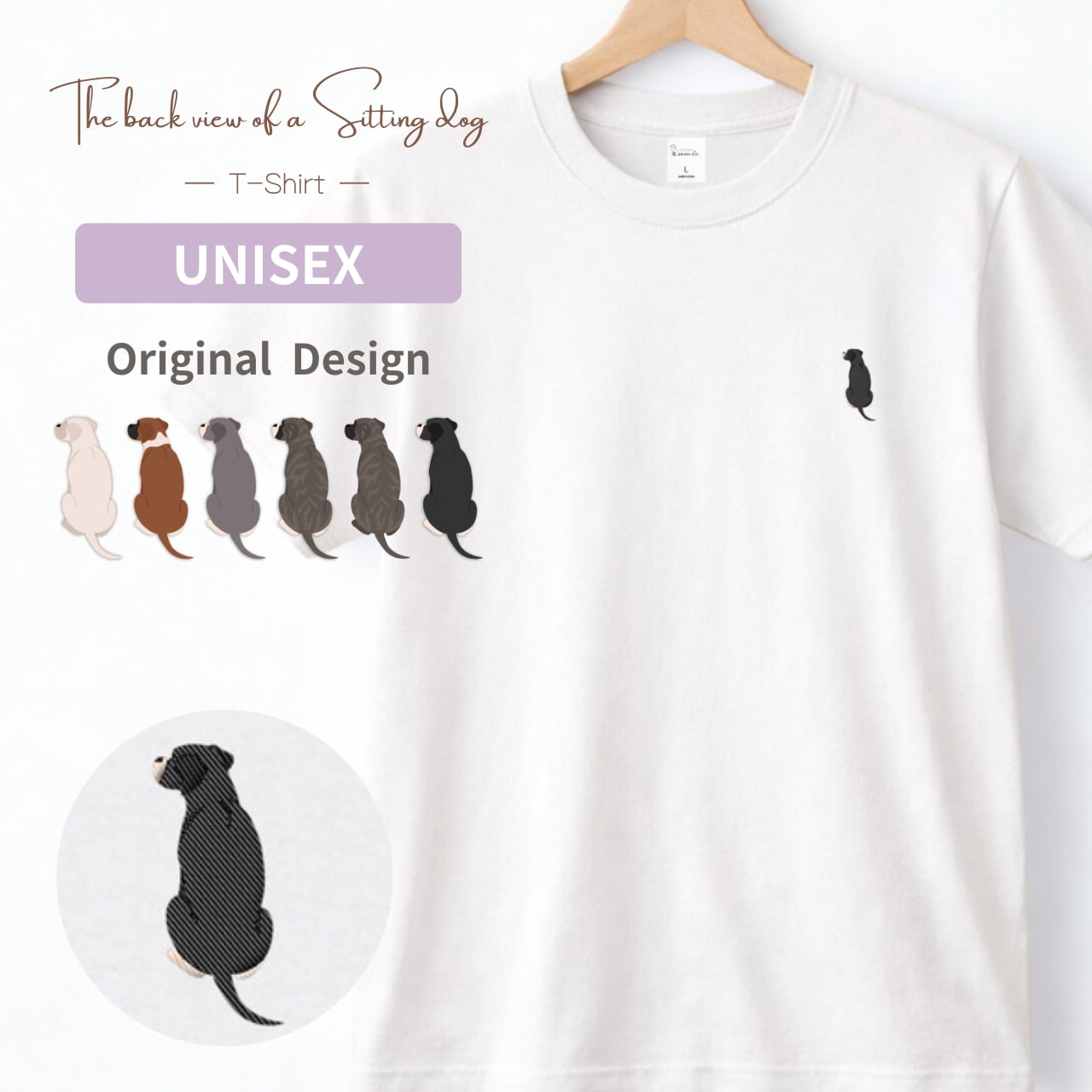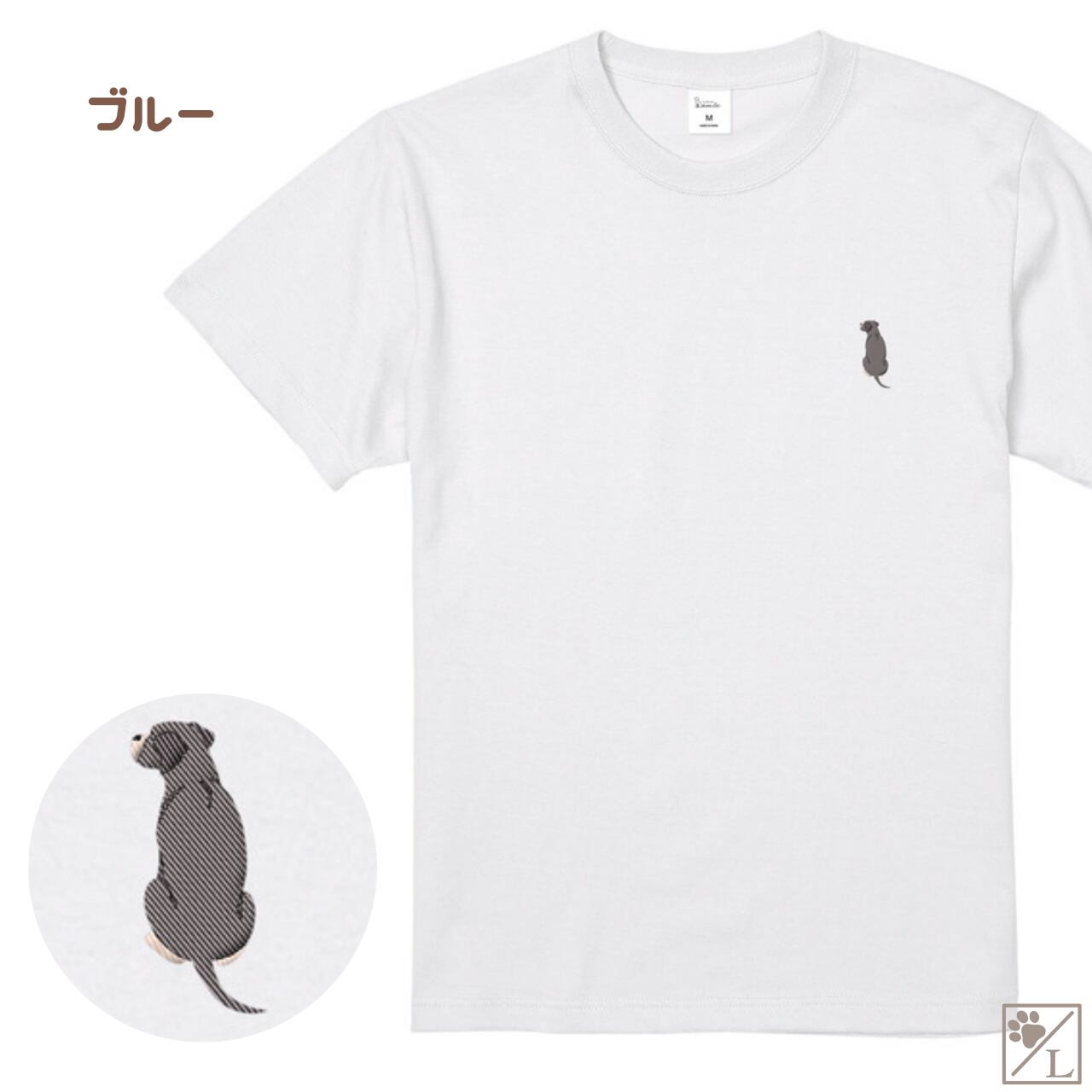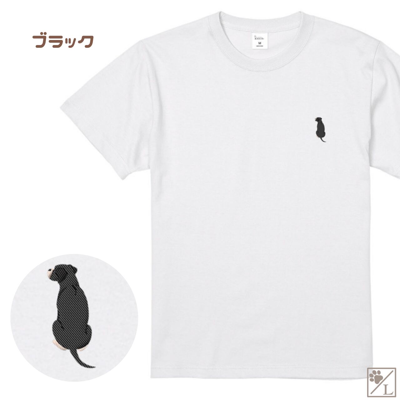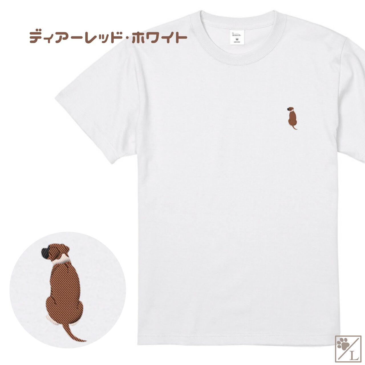 【ボクサー】ナチュラルテイル おすわり犬の後ろ姿 刺繍ワンポイントTシャツ|ユニセックス|オリジナルデザイン