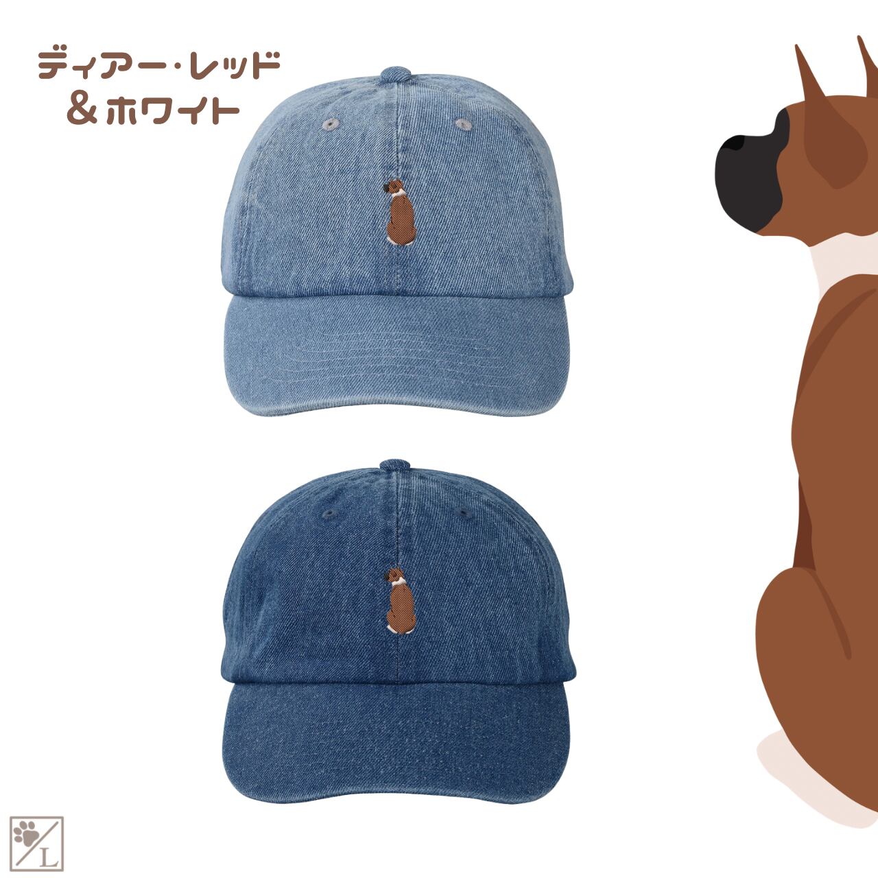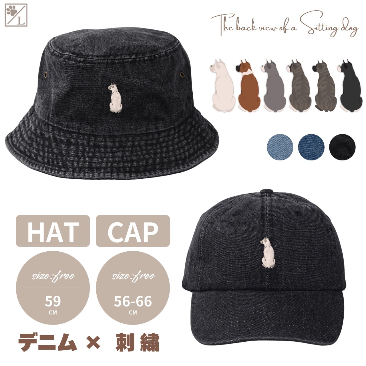 【ボクサー】刺繍 犬の後ろ姿デニムキャップ・バケットハット|選べる3色|愛犬家に人気の帽子