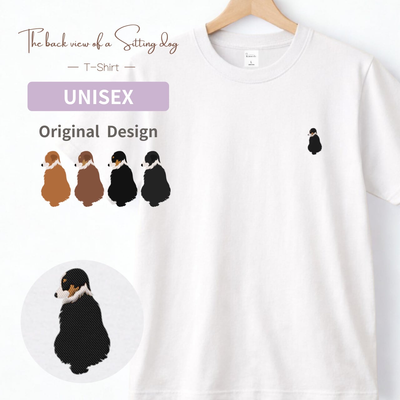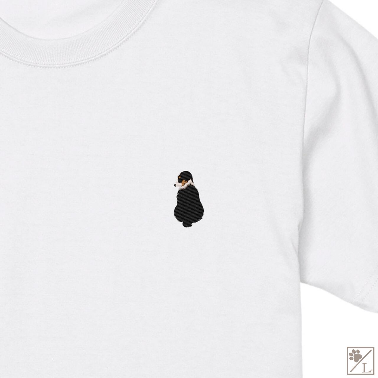 【ミニチュアアメリカンシェパード】おすわり犬の後ろ姿 刺繍ワンポイントTシャツ|ユニセックス|オリジナルデザイン