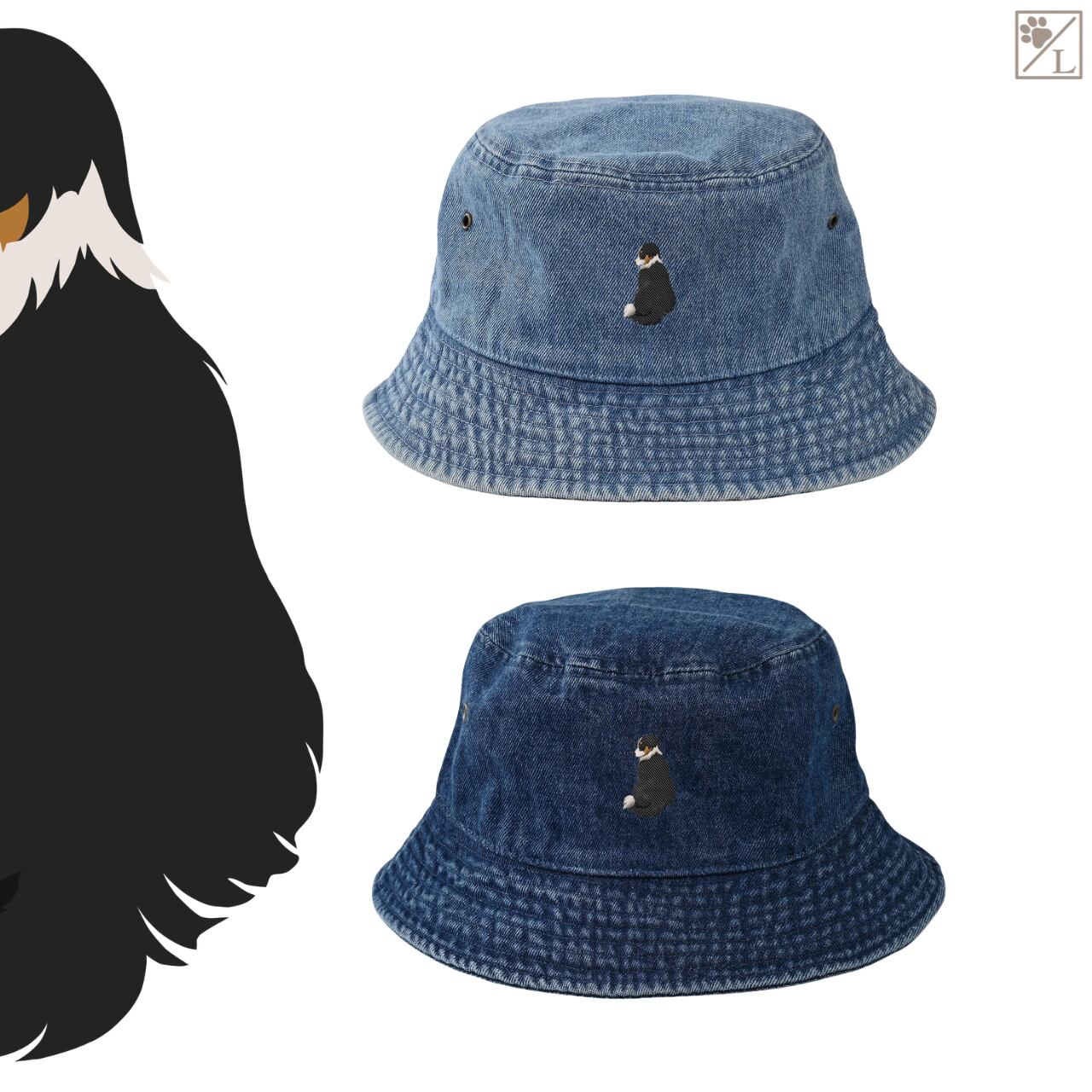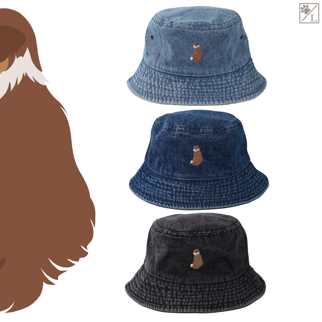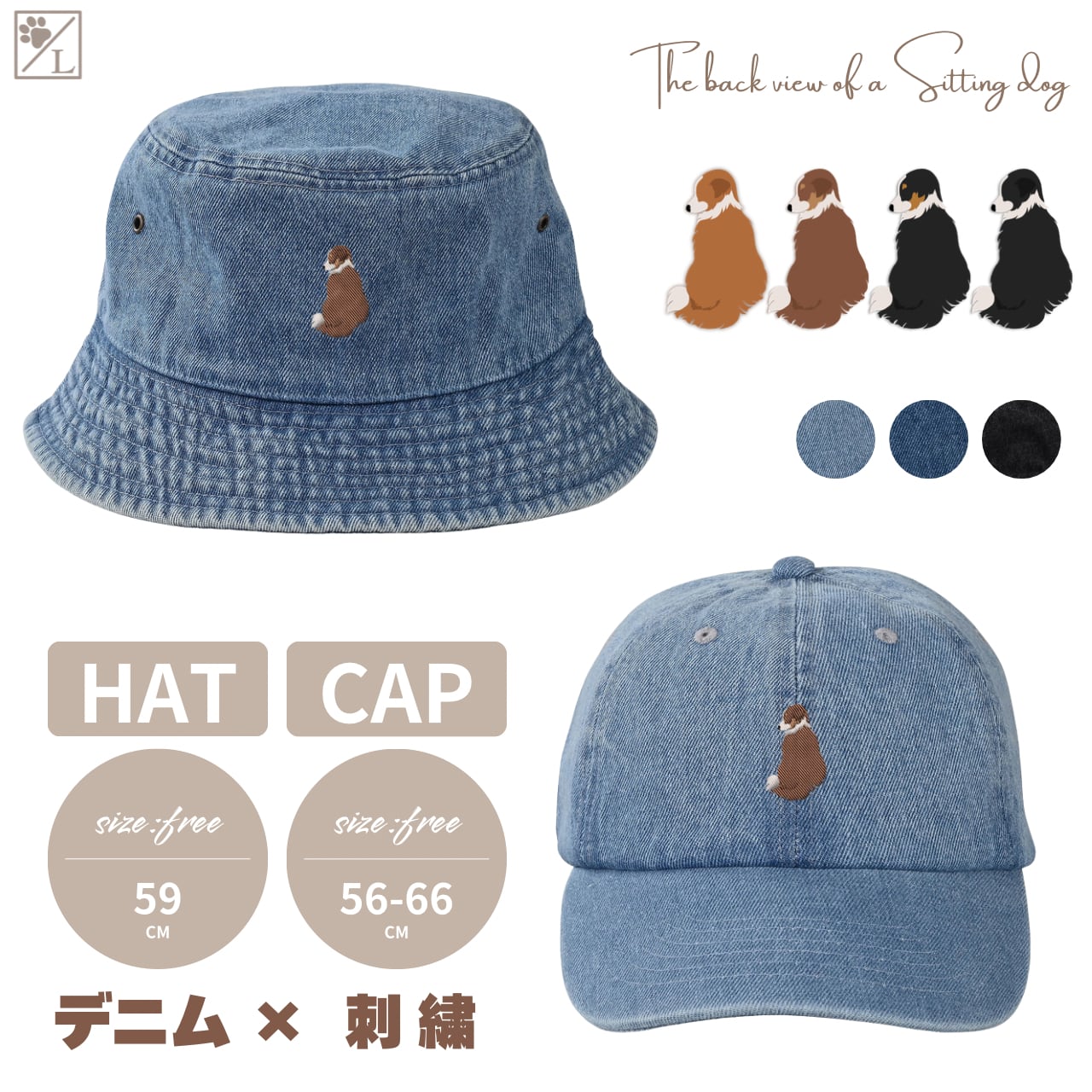 【ミニチュアアメリカンシェパード】ナチュラルテイル 刺繍 犬の後ろ姿デニムキャップ・バケットハット|選べる3色|愛犬家に人気の帽子