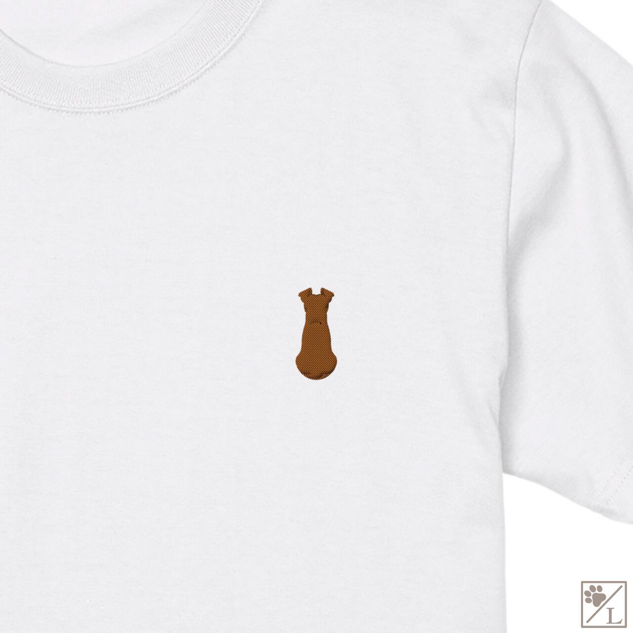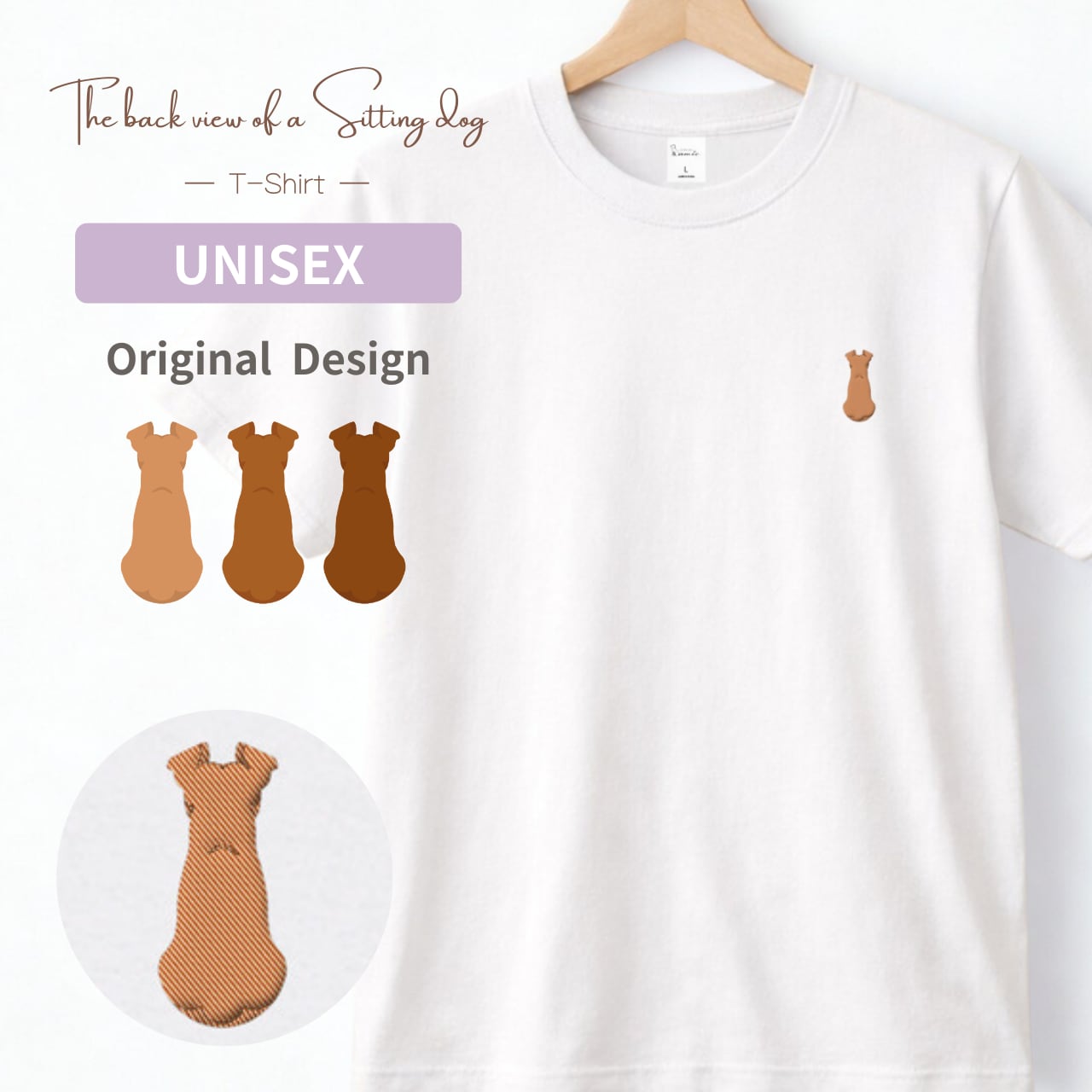 【ミニチュアピンシャー】ミニピン おすわり犬の後ろ姿 刺繍ワンポイントTシャツ|ユニセックス|オリジナルデザイン