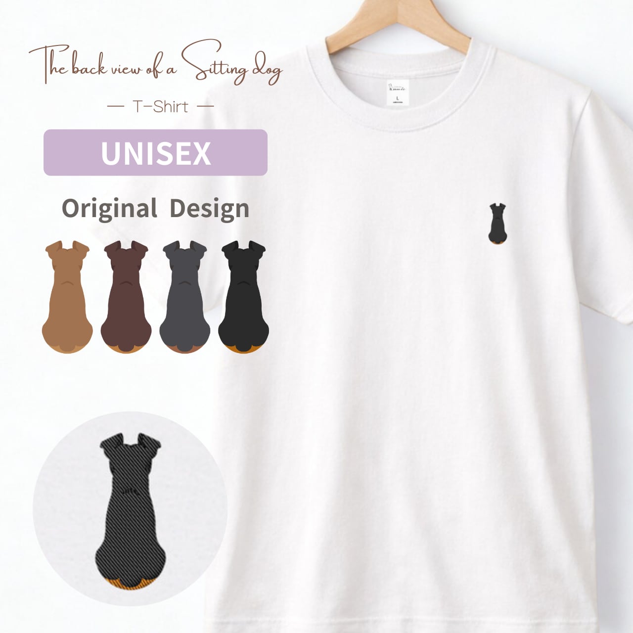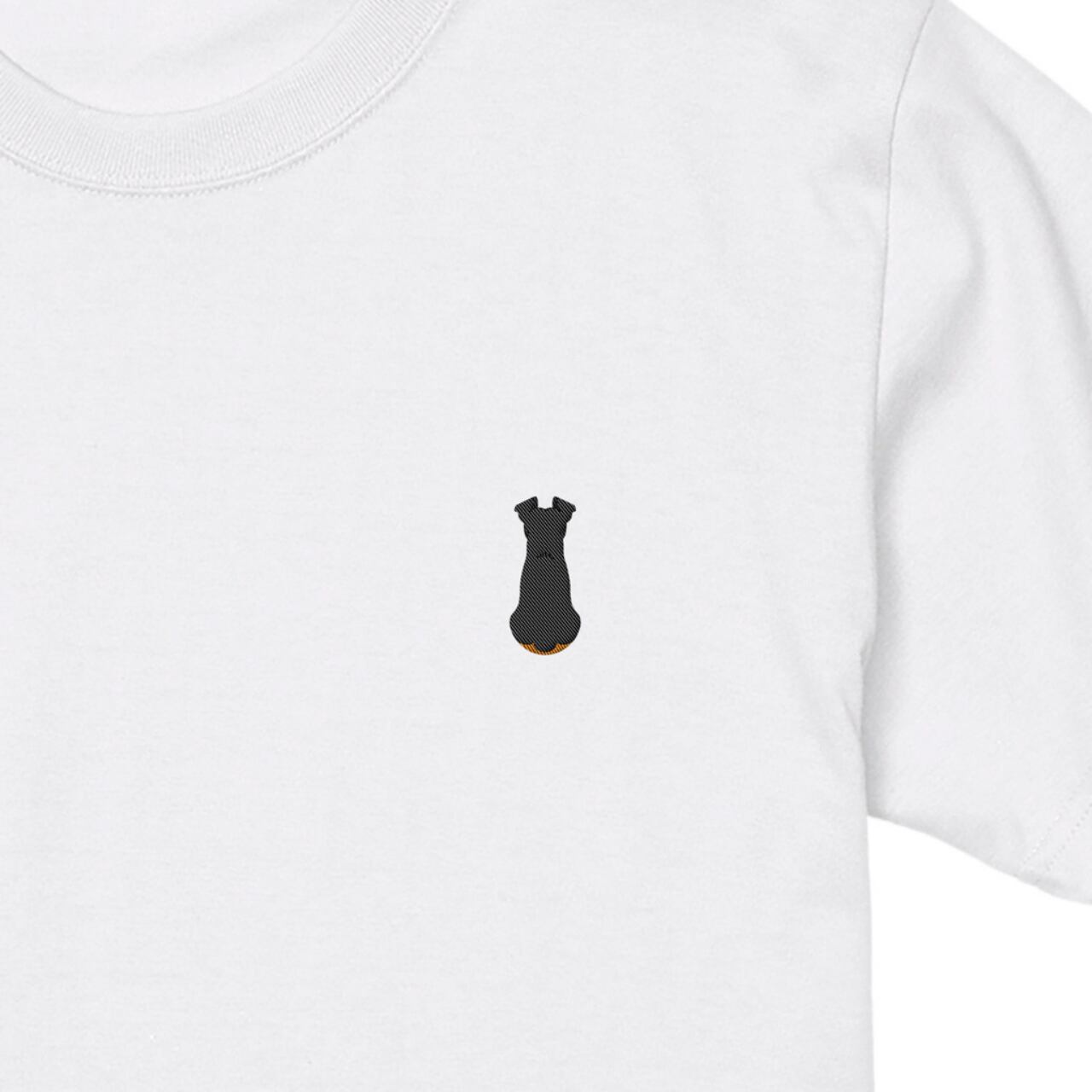 【ミニチュアピンシャー】ミニピン おすわり犬の後ろ姿 刺繍ワンポイントTシャツ|ユニセックス|オリジナルデザイン